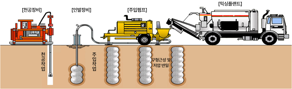 친환경 컴팩션 그라우팅(Eco Compaction Grouting System, 이하 Eco.CGS) 공법은 기존에 사용되어 오던 Grouting 공법과 달리