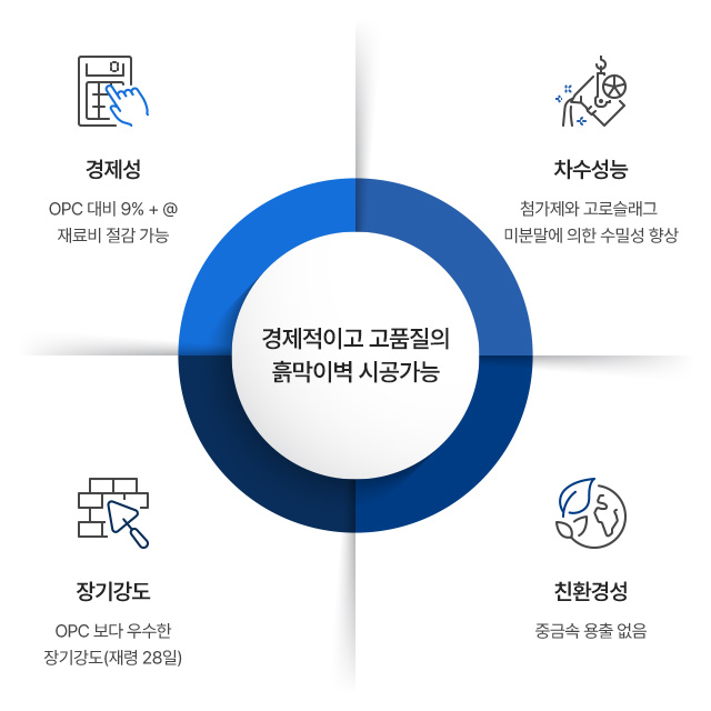 주변지반의 밀도증가와 지지력 및 지내력 확보를 동시에 만족하는 경제적이고 친환경적인 지반개량공법이다.